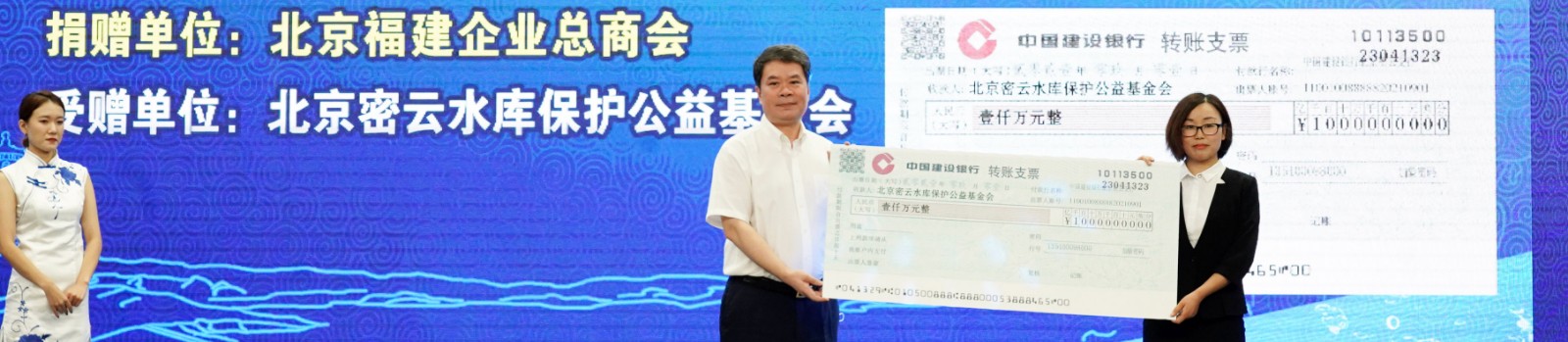 陳春玖?xí)L(zhǎng)應(yīng)邀出席北京密云水庫(kù)保護(hù)公益基金會(huì)成立大會(huì),鄭武執(zhí)行會(huì)長(zhǎng)支票